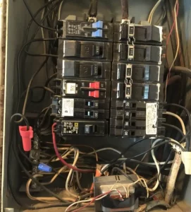 • Tableau non étiqueté, disjoncteurs absents ou anciens fusibles.